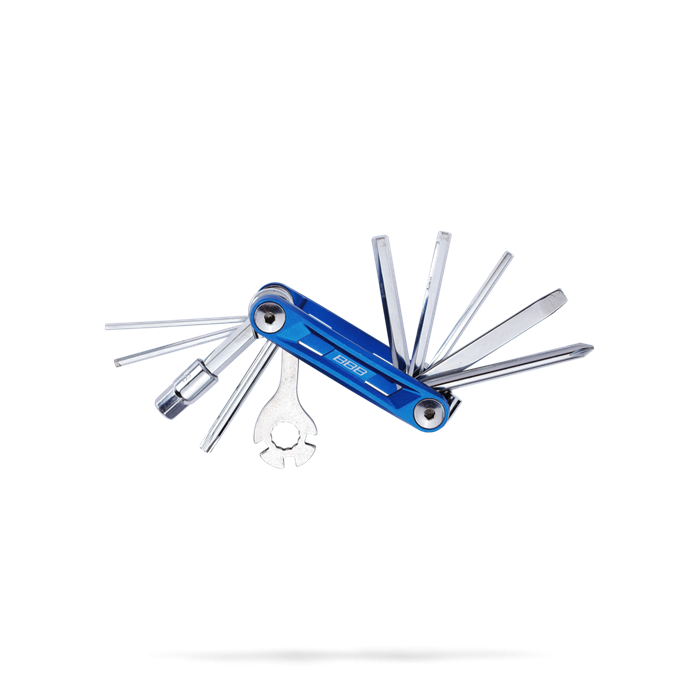 Si vous êtes particulièrement attentif à votre atelier mobile, nous vous proposons la gamme PrimeFold. Un multi-outil bleu compact et léger dans un boîtier en aluminium anodisé. Les outils sont simplement un peu plus longs et fabriqués en matériel chromé. Cela augmente la solidité et permet d'appliquer plus de force. Disponible en quatre versions différentes avec un maximum de 18 fonctions.