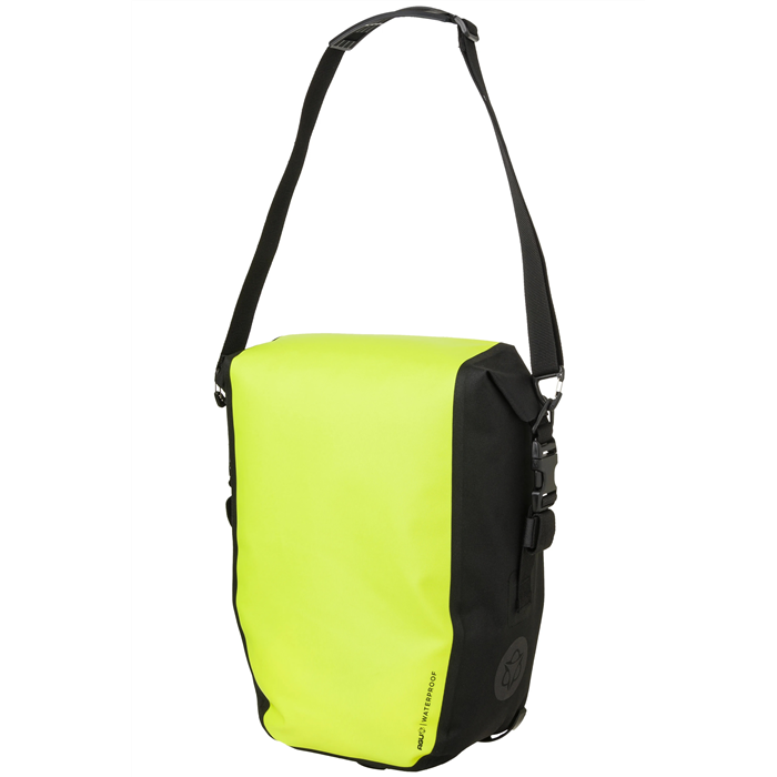 Neem uw benodigdheden met een gerust hart mee met de AGU Clean Single Bike Bag Shelter Click'nGo Large. Gemaakt van 100% waterdicht gerecycled polyester, beschermt deze lichte tas van 21 liter uw spullen tegen de elementen. De roll-top sluiting zorgt voor optimale waterdichtheid, terwijl het Click'nGo Railed Hook en Swinglock bevestigingssysteem een stabiele en snelle installatie op uw fiets garandeert. Een afneembare schouderriem vergemakkelijkt het dragen te voet, en 3M reflecterende elementen verbeteren uw zichtbaarheid en veiligheid tijdens het rijden.